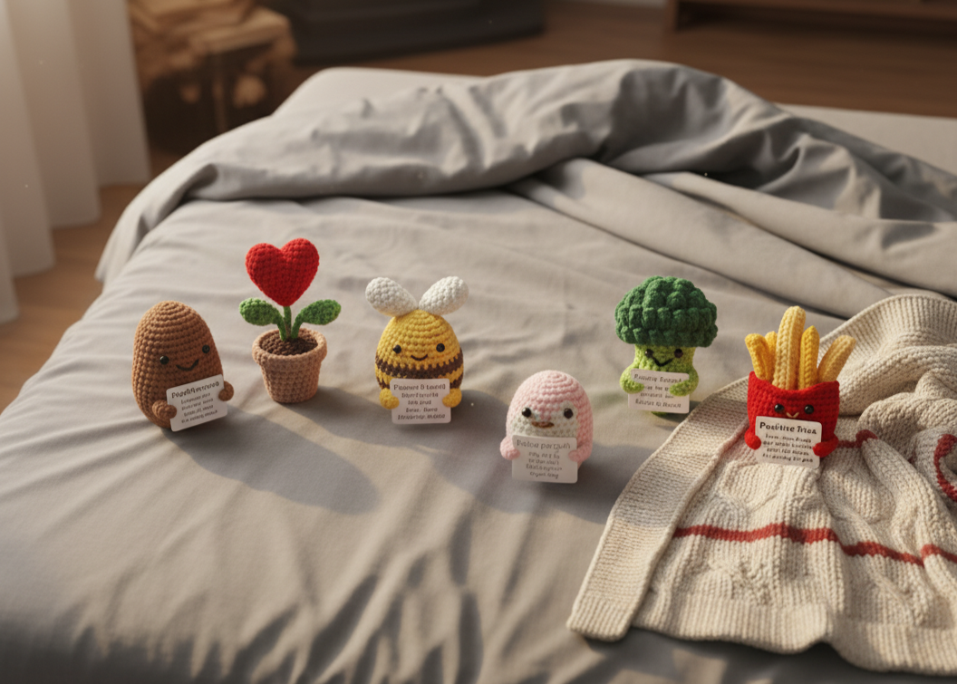 Each Joyling is hand-knitted with care and intention. From every tiny stitch to every positive note, they’re crafted to bring warmth, comfort, and a touch of handmade magic to your life.